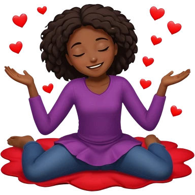 Black girl with curls and glasses, navy blue shirt, grey sweats emoji