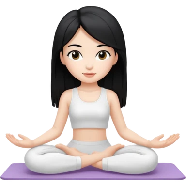 girl pink pilates princess is sitting in a lotus position in pink. yoga. brown hair and eyes light skin long hair calm emoji