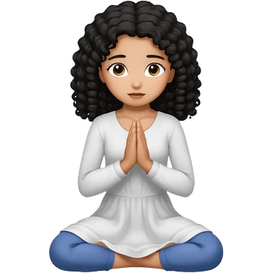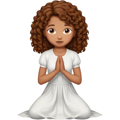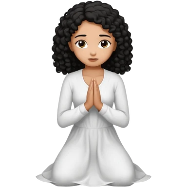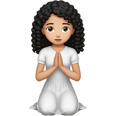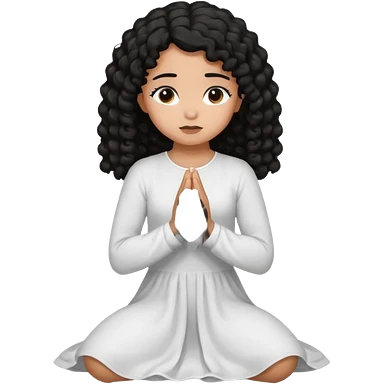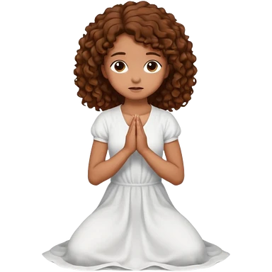 Olive toned Christian girl praying on knees to Jesus long dark curly hair in tan emoji