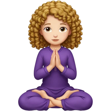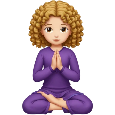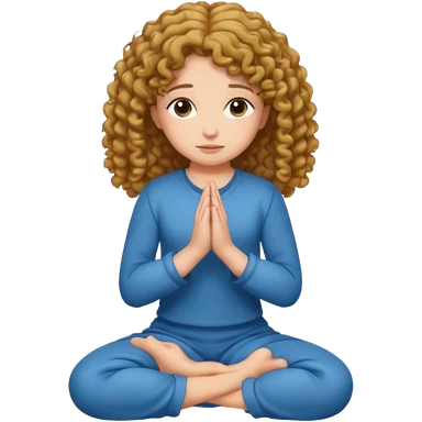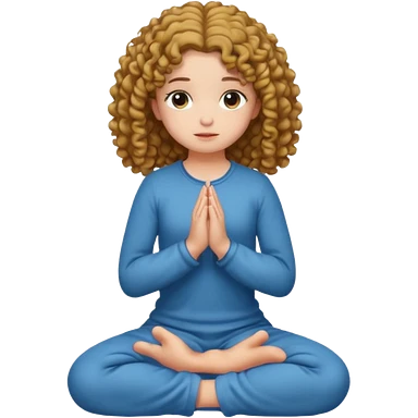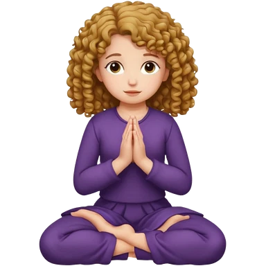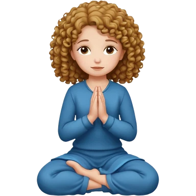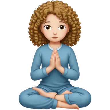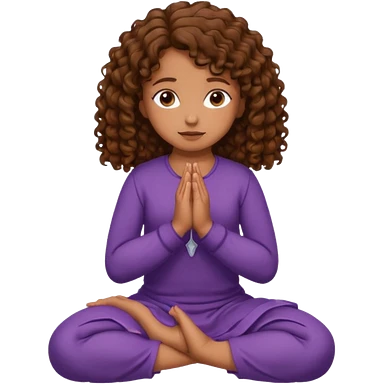 Olive toned Christian girl praying on knees to Jesus long dark curly hair in tan color yoga set emoji