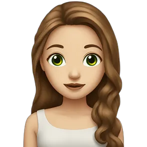 Girl with long black hair, big green eyes thin nose and thin lips emoji