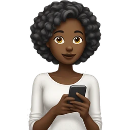 Black girl with edges and curly hear texting on a phone emoji | AI Emoji Generator