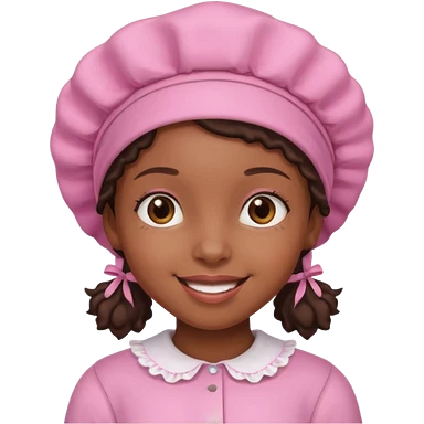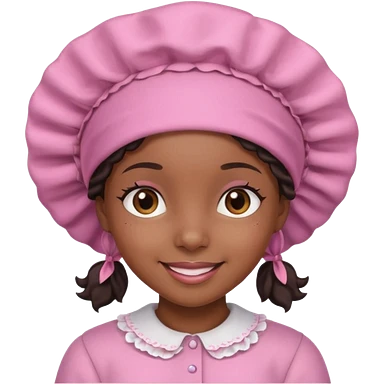 black girl with a pink bonnet, cheerful expression emoji