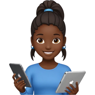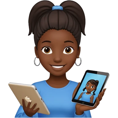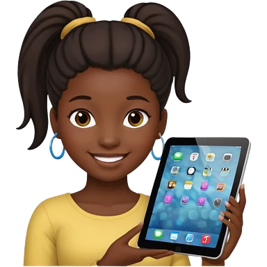 Black girl with ponytail holding ipad emoji | AI Emoji Generator