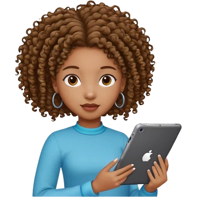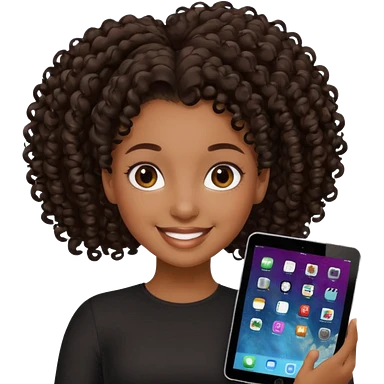 Black girl with curly ponytail holding ipad emoji