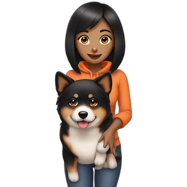 A beautiful girl with long black hair holding a black Shiba Inu emoji