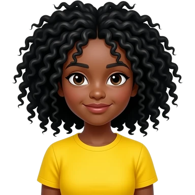 a girl with black fluffly hairs wear a vibrant yellow color shirt emoji