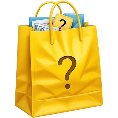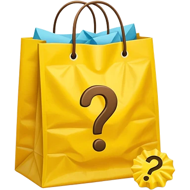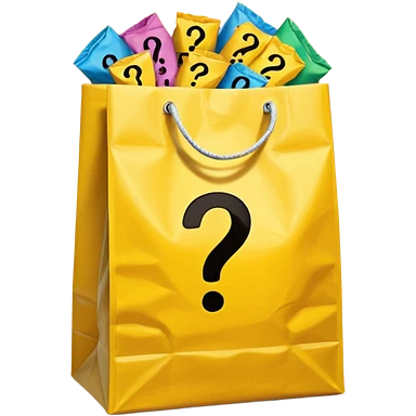 yellow goodiebag with questions mark boxes stuffed in it emoji