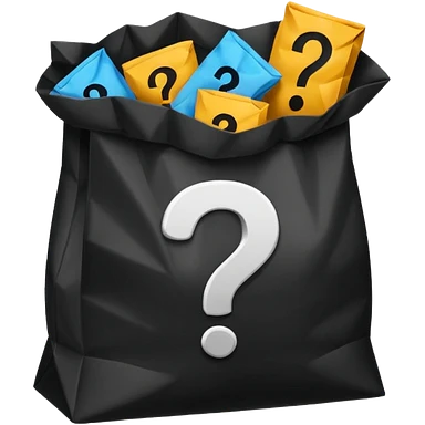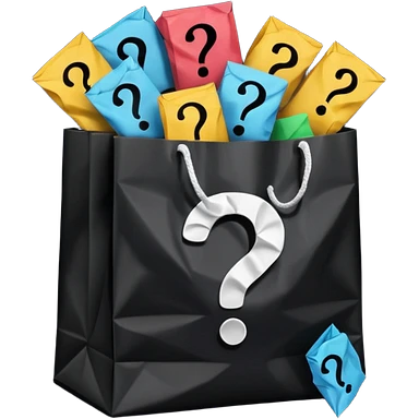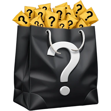 black goodiebag with questions mark boxes stuffed in it emoji | AI Emoji Generator