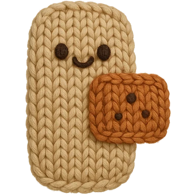 Create a portrait in knitted patch style, capturing the likeness and pose from the reference photo. Use soft yarn textures and visible knit stitches for a cozy, handcrafted look. emoji