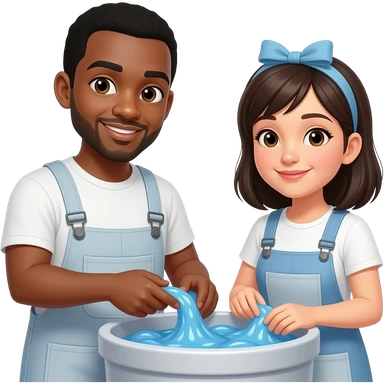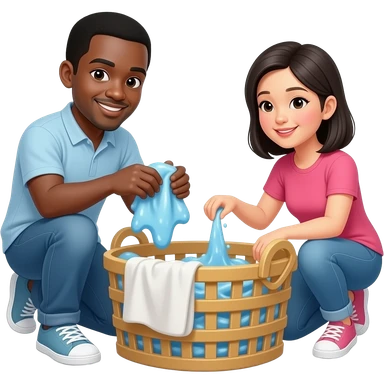 Black guy Japanese girl doing laundry emoji | AI Emoji Generator