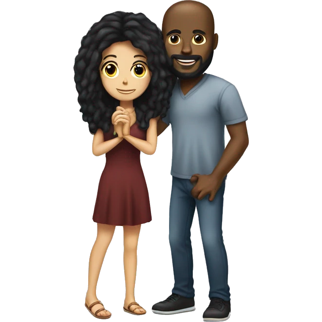 Black guy proposing with beard no moustache on one knee with a ring to a standing girl with long black hair emoji | AI Emoji Generator
