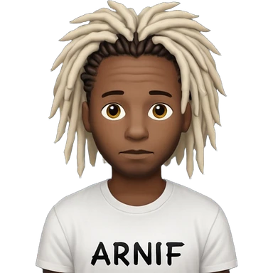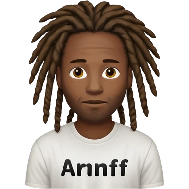 black guy wearing a white shirt saying ARNF in black text in the middle chest while having dreads emoji | AI Emoji Generator