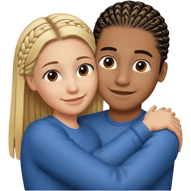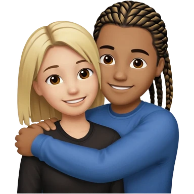 dirty blonde girl with straight hair and medium toned guy with black cornrows hair hugging emoji