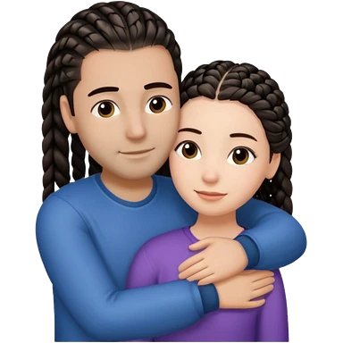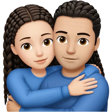 brunette girl with straight hair and medium toned guy with black cornrows hair hugging emoji