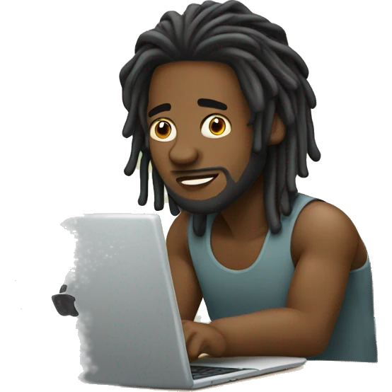 Black guy with dreads sitting down on chair facing right-hand sided focused on laptop computer emoji | AI Emoji Generator