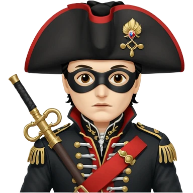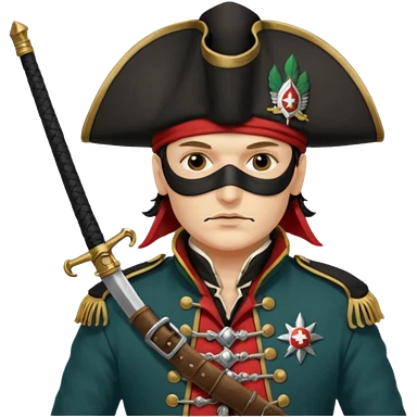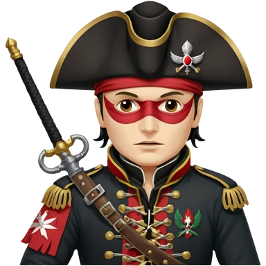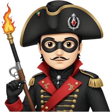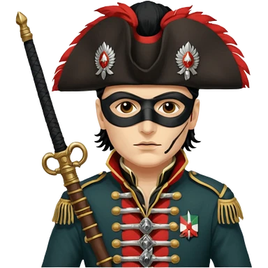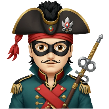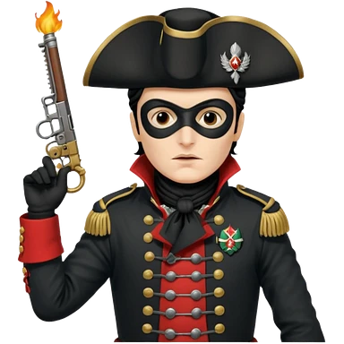 Adam Ant with black mask is wearing a Hungarian jacket Hussar'S JACKET, holds two firelocks holsters in his hands emoji
