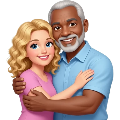 older black guy (no grey hair) hugging curly blonde woman emoji