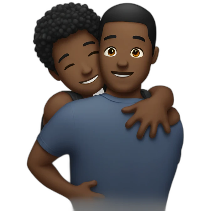 Two guys hugging, one is bald with black beard and the other guy have brown hair emoji
