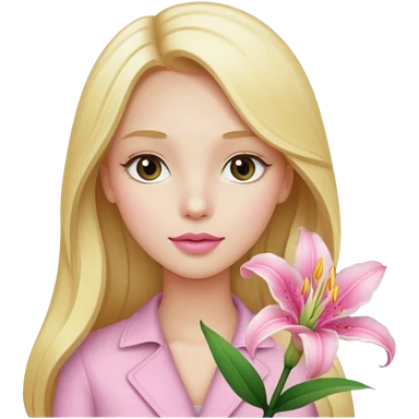 light pink lilium with a girl with blond long hair and latina make up emoji