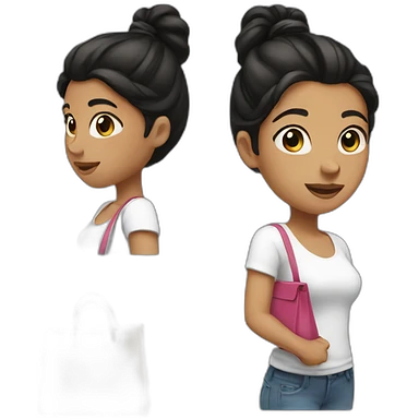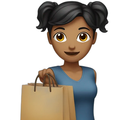 Black hair, European woman, ponytail, holding multiple bags emoji | AI Emoji Generator