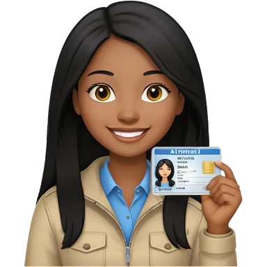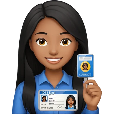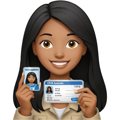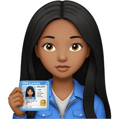 long hair black girl holding a driver license emoji