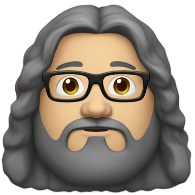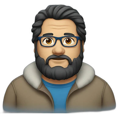 black hair, pale skin man with beard, 40 year old, round brown eyes, soft smile, wearing grey pro headphones with grey sweatshirt emoji | AI Emoji Generator
