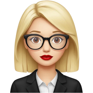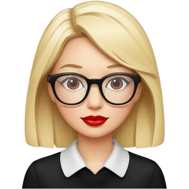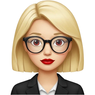 woman, big blonde long hair, black glasses, red lipstick emoji
