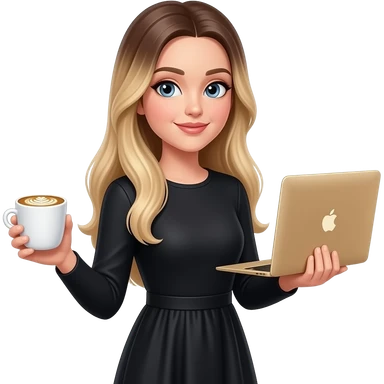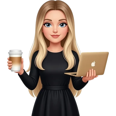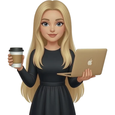 Black hair woman wearing pink shirt holding a gold macbook emoji | AI Emoji Generator
