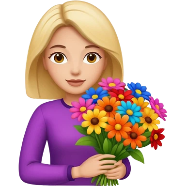 blonde woman with geen eyes holdingg a big bouquet of flowers emoji