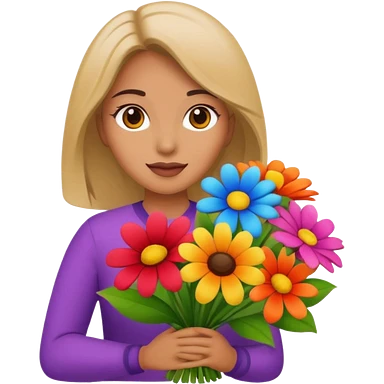 black hair woman with big bouquet of flowers emoji | AI Emoji Generator
