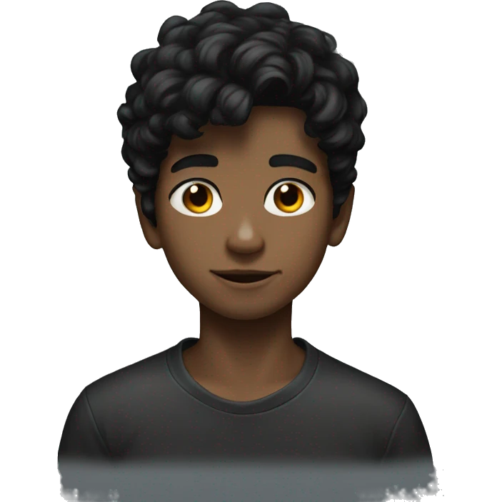 Black-haired boy with front bangs, green eyes, black shirt, hands up in a confused emoji pose emoji
