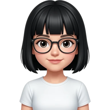 short black haired girl with flat bangs wearing glasses and wearing a white t-shirt emoji