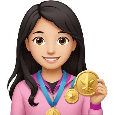 Girl child with black hair and many medals on neck emoji