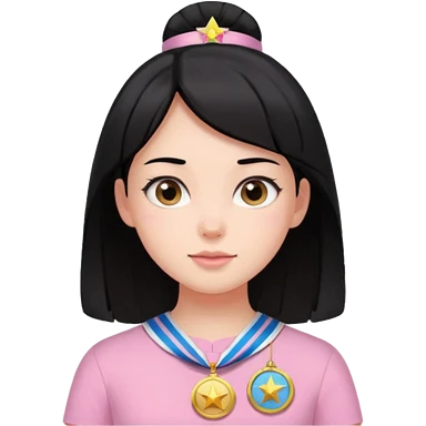 black haired girl wearing pastel pink with medals emoji