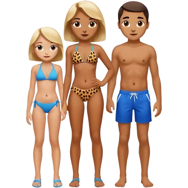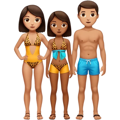black haired girl with big boobs with shades on... wearing a cheetah print bikini standing with a boy with black hair wearing glasses and shirt less emoji | AI Emoji Generator