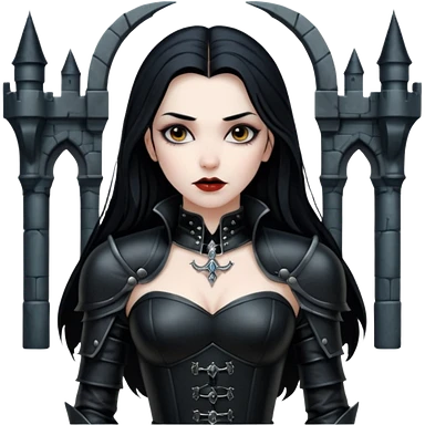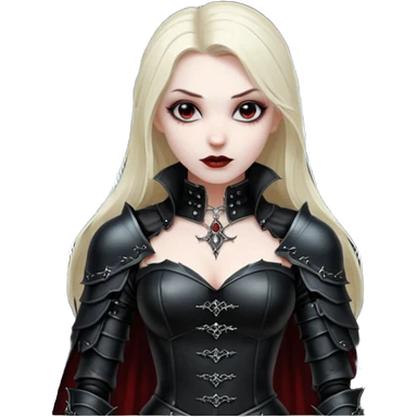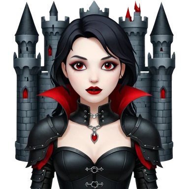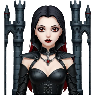 Vampire woman in black leather armor, exposed shoulders, cold desire, gothic castle interior emoji