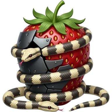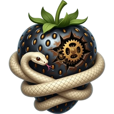 steampunk - rusty broken mechanical steel black strawberry, wrapped in albino boa snakes emoji