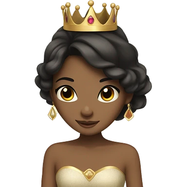 tan black haired gurl with dress and crown as a princess with eyes closed happy emoji