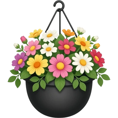 Black hanging basket filled with flowers emoji | AI Emoji Generator