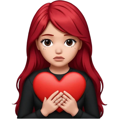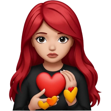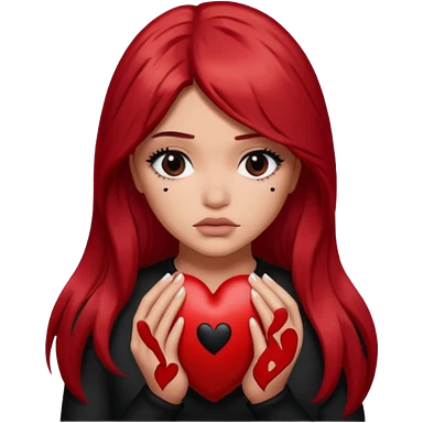 Pale girl with long black hair holding heart in her hands emoji
