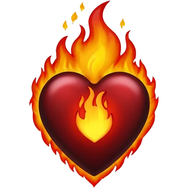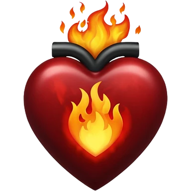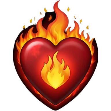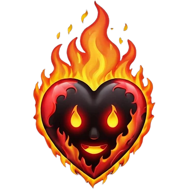 Black heart on fire, white lines inside of the heart to symbolize a smiling face emoji