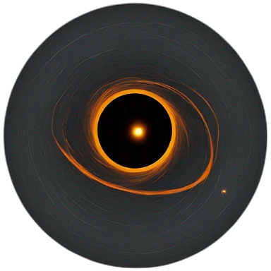 A black hole with a glowing, swirling accretion disk in orange, yellow, and white, with hints of red and blue. Distorted stars and vivid blue-violet jets contrast with the dark center. emoji