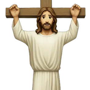 jesus-body-on-the-cross, with black edgy Emo hair emoji