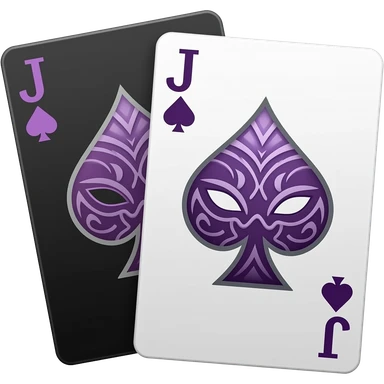 two cards next to each other like joker type but black and purple as if he is a trickster not a face just a card like a mask emoji