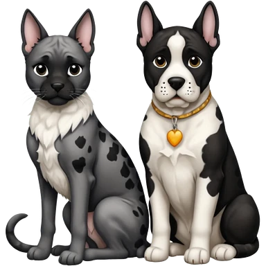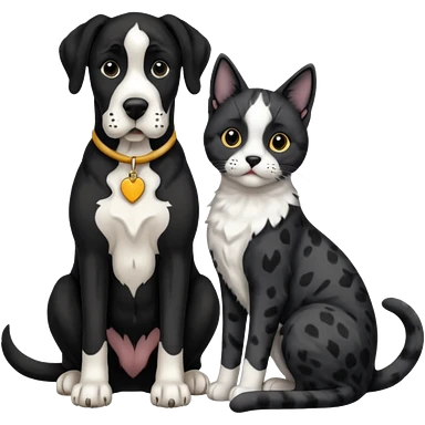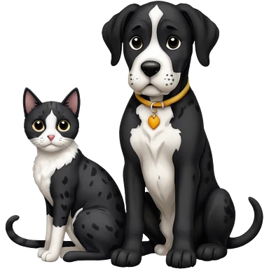 Black and white great dane dog sitting with a black and white cat emoji