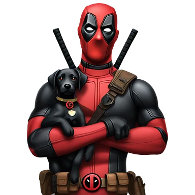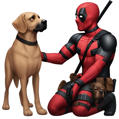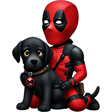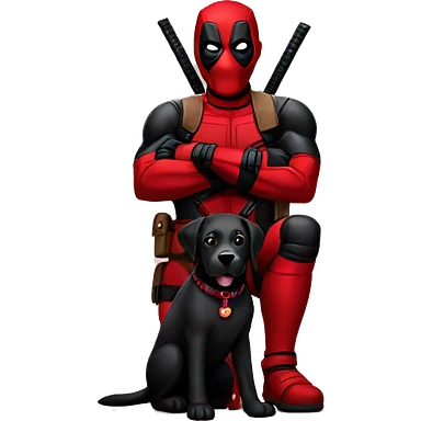 Black lab with red and pink collar holding a bouquet of yellow roses emoji