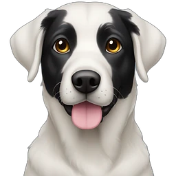 "Border Collie with striking ice-blue eyes, black and white fur pattern. White face with black patches around eyes and ears. Perked triangular ears and fluffy, well-groomed coat." emoji