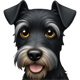Black lab triangular face small black eyes small tongue white mustache emoji