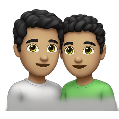 Gay couple, white with black hair and green eyes, black woth black hair and black eyes emoji